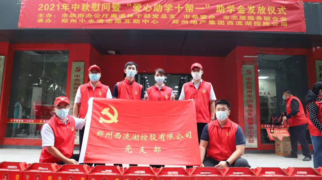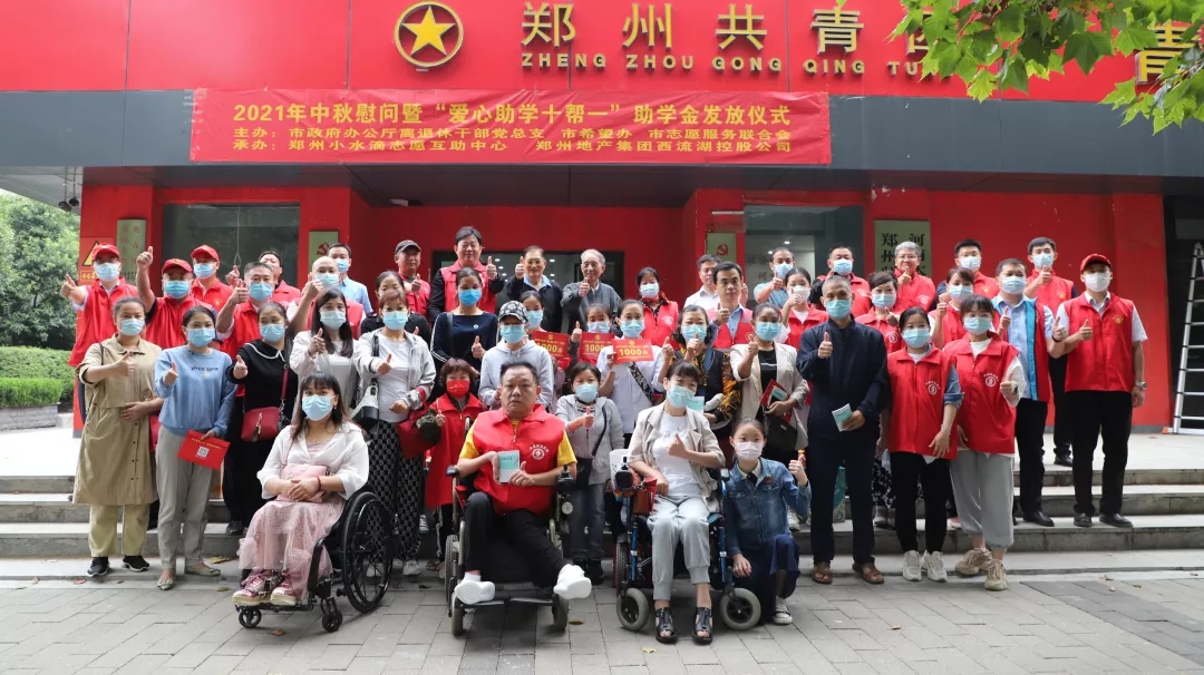 在中秋佳節(jié)來臨之際,由鄭州市政府辦公廳離退休干部黨總支、鄭州市希望工程辦公室、鄭州市志愿服務聯(lián)合會主辦,鄭州市小水滴志愿互助中心、鄭州地產(chǎn)集團西流湖控股公司聯(lián)合承辦的2021年中秋慰問暨“愛心助學十幫一”助學金發(fā)放儀式于9月17日上午在鄭州共青團青春家園舉行。