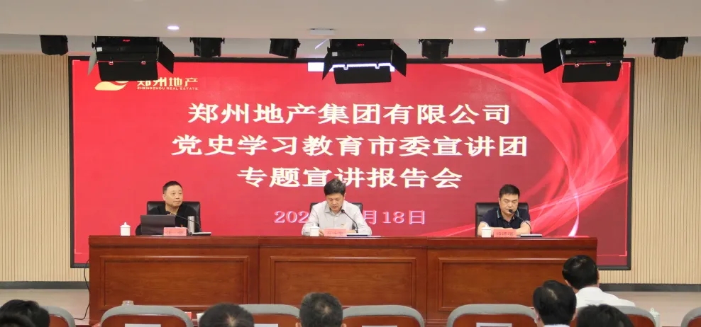 為持續(xù)推進(jìn)黨史學(xué)習(xí)教育走深走實(shí),5月18日上午,鄭州市委宣講團(tuán)走進(jìn)鄭州地產(chǎn)集團(tuán),在集團(tuán)301多功能廳開展黨史學(xué)習(xí)教育專題宣講報(bào)告會(huì)。報(bào)告會(huì)由鄭州市委宣講團(tuán)成員、鄭州工程技術(shù)學(xué)院馬克思主義學(xué)院副教授張豪主講,市國(guó)資黨史學(xué)習(xí)教育第二巡回指導(dǎo)組組長(zhǎng)、四級(jí)調(diào)研員段德強(qiáng),指導(dǎo)組成員張?jiān)娪?、陳祥斐到?huì)巡聽旁聽,地產(chǎn)集團(tuán)領(lǐng)導(dǎo)班子、總部全體員工,各子公司支部書記、黨建部門負(fù)責(zé)人等共計(jì)150余人參加現(xiàn)場(chǎng)報(bào)告會(huì),各子公司員工共計(jì)170余人通過線上直播進(jìn)行觀看,會(huì)議由地產(chǎn)集團(tuán)黨委書記、董事長(zhǎng)萬(wàn)永生主持。