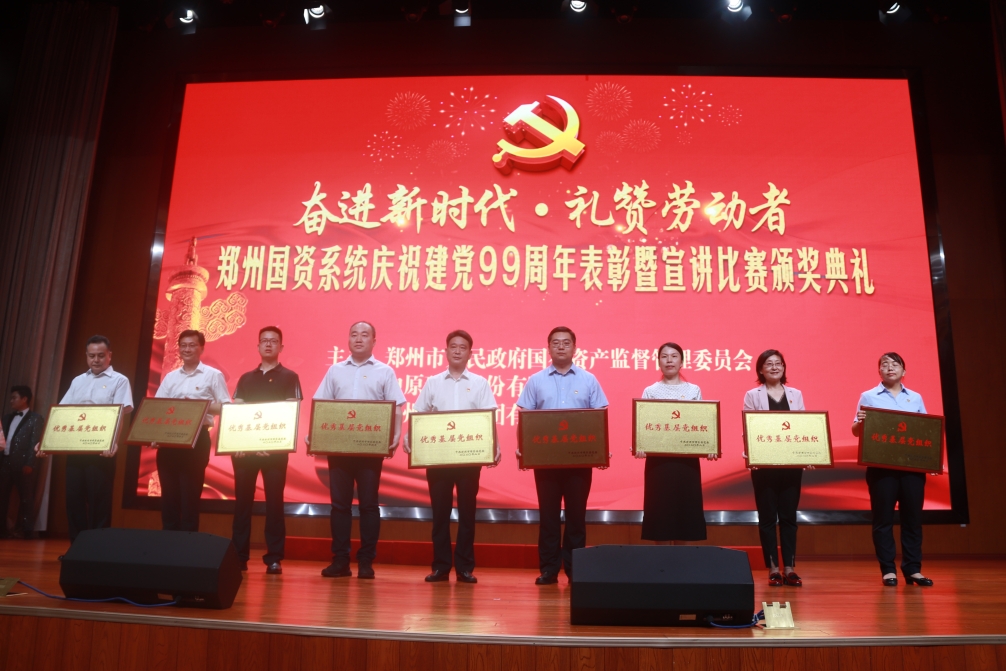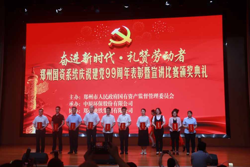 為慶祝中國(guó)共產(chǎn)黨成立99周年,重溫黨的光輝歷程,傳承黨的優(yōu)良傳統(tǒng),6月30日下午,鄭州市國(guó)資委舉行“奮進(jìn)新時(shí)代·禮贊勞動(dòng)者”——鄭州國(guó)資系統(tǒng)慶祝建黨99周年表彰暨宣講比賽頒獎(jiǎng)典禮,集團(tuán)黨委書(shū)記、董事長(zhǎng)萬(wàn)永生,監(jiān)事會(huì)主席李靜波,以及集團(tuán)優(yōu)秀基層黨組織、優(yōu)秀共產(chǎn)黨員、優(yōu)秀基層代表、獲獎(jiǎng)節(jié)目代表等共計(jì)20余人參加此次頒獎(jiǎng)典禮。