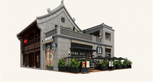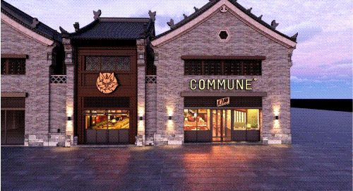 以COMMUNE幻師的門店設(shè)計為例——從效果圖可以看出,建筑外部以青灰色磚墻復刻商代建筑肌理,檐角神獸造型融入現(xiàn)代燈光設(shè)計,整體風格充滿著古樸與時尚。店內(nèi)則以暖色調(diào)營造松弛感,酒墻擺滿了來自全球的精釀。每當味蕾觸碰到精釀的麥香,窗外同時飄入來自3600年前夯土的氣息——在這里,顧客喝的不是單純的酒,而是歷史與現(xiàn)代的奇妙敘事。